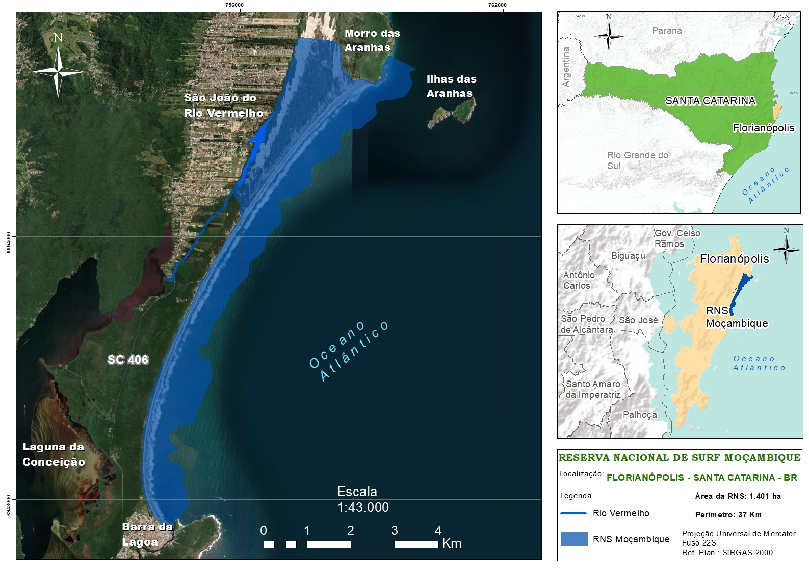 A praia do Moçambique é parte integrante do Parque Estadual do Rio Vermelho, uma Unidade de Conservação de proteção integral administrada pelo Instituto de Meio Ambiente de Santa Catarina (IMA), tendo o Rio Vermelho como o principal contribuinte de água doce para Lagoa da Conceição. A praia é considerada uma das mais balneáveis e belas de Florianópolis e está inserida na porção nordeste da Bacia Hidrográfica da Lagoa da Conceição, cartão postal da cidade e que forma um ecossistema de surf diverso e rico em biodiversidade, um cenário ideal para uma Reserva Nacional de Surf.